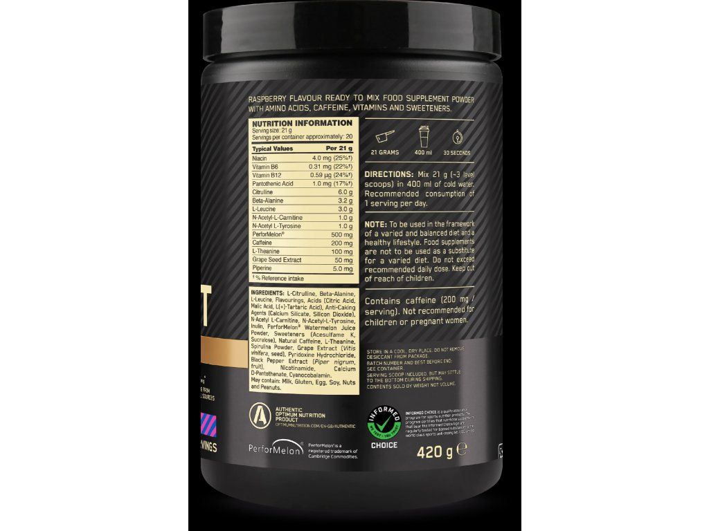 Každá dávka obsahuje 6 g L-Citrulínu, 3,2 g Beta-Alanínu, 3 g L-Leucínu a 200 mg kofeínu, čo ti pomôže získať viac energie, lepšiu koncentráciu a intenzívnejší svalový pump.